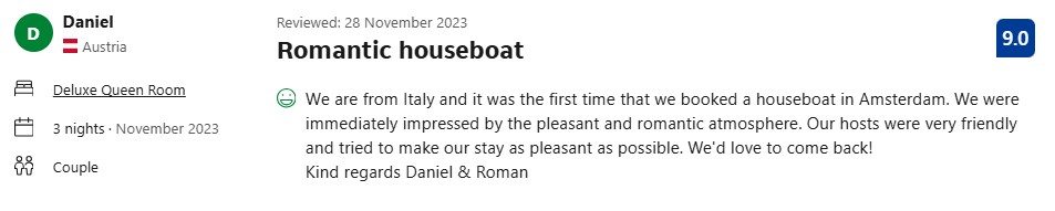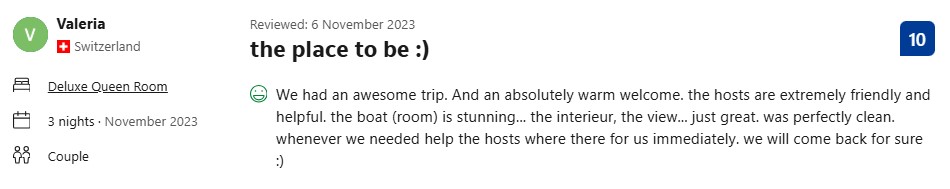 Martin and Agustina are the owners of this special ship. Agustina is a Building Engineer, Spanish, and has lived in the Netherlands since 2003. She loves Architecture, Interior Design, art, Design, gardening and people! She designed the boat. Martin is a journalist and super handy. He spent a lot of time building the new boat. We would like you to enjoy your stay :) Sometimes I get emotional when I see how careful they are when tidying up the room before they leave the B&B after their stay... ♡ Thank you all so much!